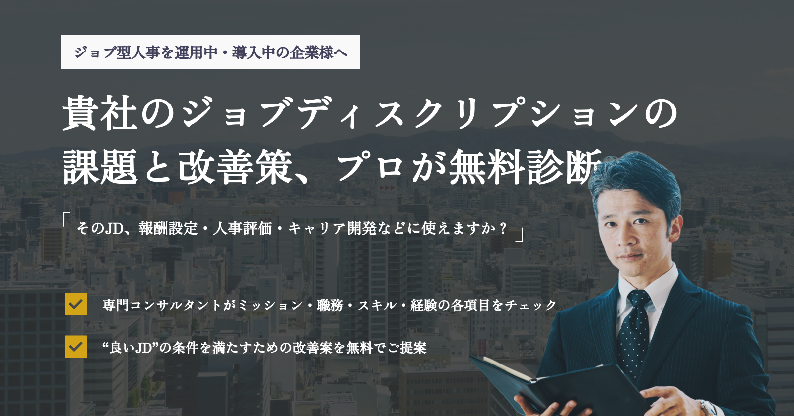 「そのジョブディスクリプション、人事施策に本当に使えますか?JDの課題と改善策をプロが“無料診断”」お申し込みフォーム