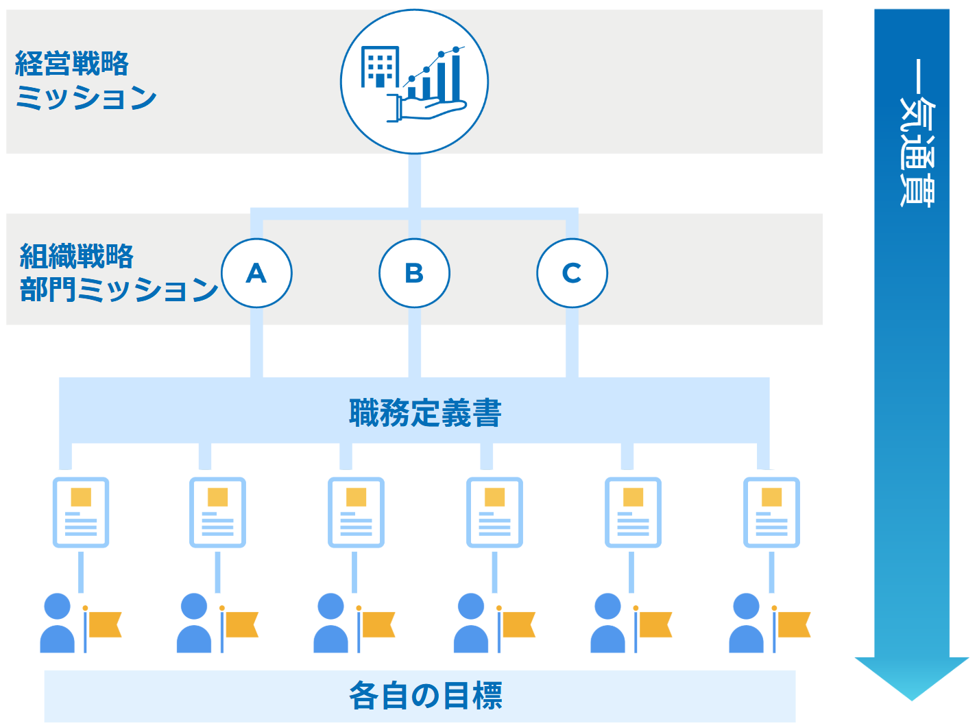 ジョブ型人事制度の構造(戦略 → JD → 個人目標)