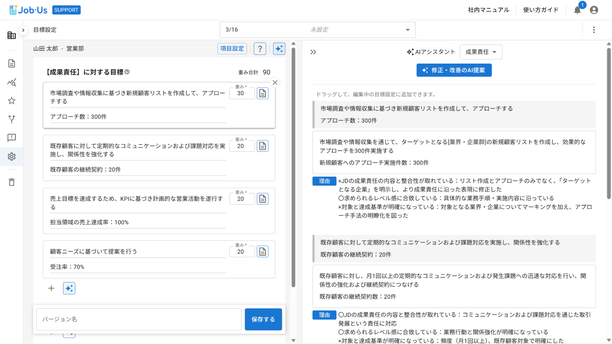 2.JDに基づき、より適切な目標の改善案をAIが生成
